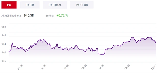 Pražská burza dnes znovu mírně rostla. Index PX posílil o 0,72 procenta na 945,58 bodu. Nahoru ho táhly akcie technologické společnosti Avast, které zpevnily o 3,67 procenta. Dařilo se také pojišťovně VIG, Komerční bance a elektrárenské společnosti ČEZ.