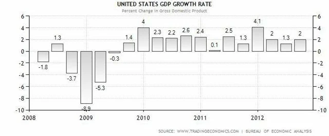 Americký HDP ve třetím kvartálu podle prvních odhadů vzrostl o 2 %. Čekal se růst o 1,8 % (ve druhém kvartálu rostla americká ekonomika o 1,3 %). Stále se však jedná o růst hluboko pod očekávaným potenciálem americké ekonomiky (nad 3 %), spíše jde o potvrzení "nového normálu". Za očekáváním (+2,1 %) zaostala ve třetím čtvrtletí osobní spotřeba, když vzrostla také jen o 2 %.