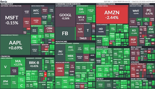Náladu investorů zlepšila i pravidelná situační zpráva o vývoji ekonomiky zveřejňovaná centrální bankou USA, takzvaná Béžová kniha. Ta ukázala, že americké podniky na začátku července zaznamenaly nárůst aktivity, protože státy uvolnily omezení, která měla zastavit šíření koronaviru. Mnoho těchto firem si ale stále není jisto, jak se bude ekonomika dále vyvíjet.