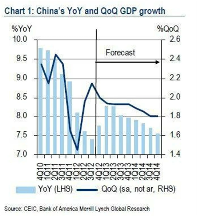 Nově se k optimistům ohledně Číny zařadili analytici americké banky Bank of America Merrill Lynch. Revize predikce růstu čínského HDP z jejich dílny vypadá následovně: