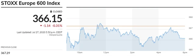 STOXX Europe 600 - 27. července 2020, zdroj: MarketWatch