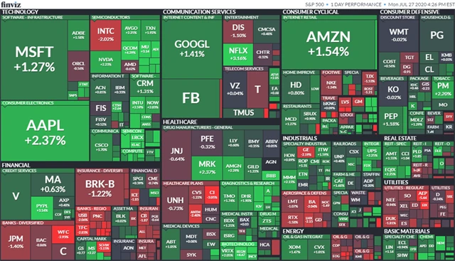 Index S&P 500 táhly vzhůru především společnosti Apple (+2,37 %), Amazon (+1,54 %) a Facebook (+1,21 %), které ve čtvrtek zveřejní výsledky hospodaření za uplynulé čtvrtletí.