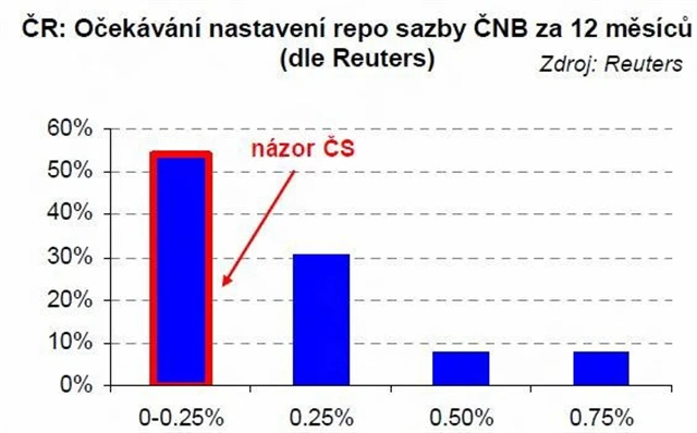 Rada ČNB bude ve čtvrtek znovu rozhodovat o sazbách. Základní repo sazba se momentálně nachází na 0,25 %, mírně se kloníme k tomu, že dále poklesne o 15 bodů na 0,1 %. Pokles na nulu nečekáme kvůli technickým a legislativním omezením.