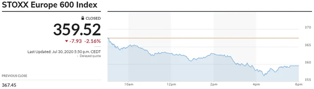 STOXX Europe 600 (30. července 2020), zdroj: MarketWatch