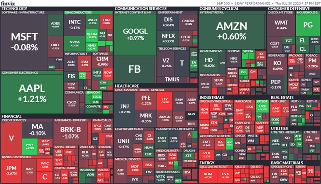 Nejhůře si ve čtvrtek vedly energetické a finanční podniky. Akcie firem Apple (v řádném obchodování +1,21 %), Amazon (v řádném obchodování +0,60 %), Alphabet (v řádném obchodování +0,98 %) a Facebook (v řádném obchodování +0,52 %), které po konci obchodování zveřejnily hospodářské výsledky, v řádné seanci smazaly počáteční ztráty a skončily v zisku. Cenné papíry výrobce čipů QUALCOMM (+15,22 %) zpevnily díky výhledu dalšího vývoje tržeb.
