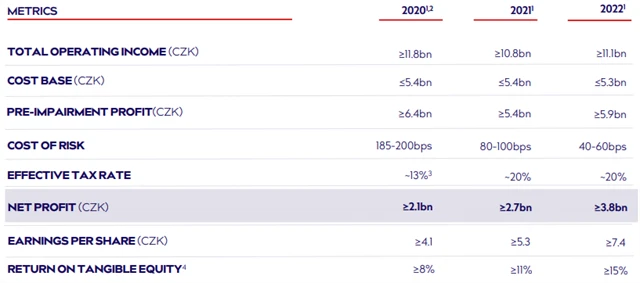 V roce 2021 by měly provozní výnosy činit minimálně 10,8 miliardy Kč a v roce 2022 minimálně 11,1 miliardy Kč. Výsledek na úrovni čistého zisku MONETA odhaduje letos na minimálně 2,1 miliardy Kč, příští rok pak na minimálně 2,7 miliardy Kč a v roce 2022 na minimálně 3,8 miliardy Kč. Plné zotavení z koronaviru by tak podle Monety mělo nastat právě až v roce 2022.