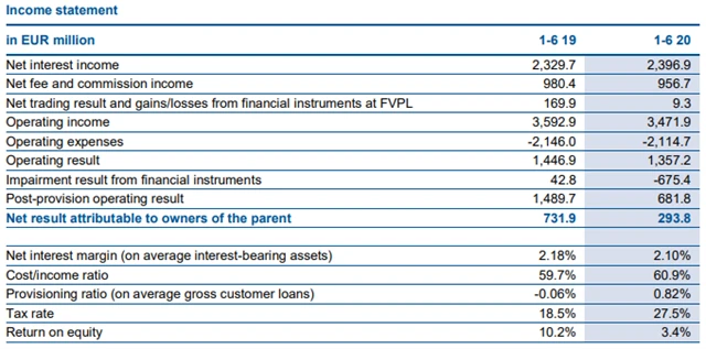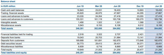Vzrostl objem úvěrů i vkladů klientů. Úvěry poskytnuté klientům stouply ke konci června na 163,74 miliardy eur ze 155,33 miliardy eur před rokem a vklady klientů se zvýšily na 182,67 miliardy eur ze 169,67 miliardy eur.