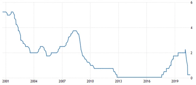 Předtím banka naposledy snížila základní sazbu na konci března, a to o 0,75 procentního bodu na 1,00 %. Na mimořádném zasedání 16. března bankovní rada sazbu snížila o půl procentního bodu z 2,25 %. Cílem uvolňování měnové politiky je zmírnění dopadů situace způsobené pandemií nemoci covid-19 na české firmy, podnikatele i domácnosti.