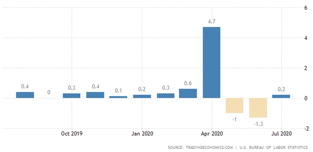 Spotřebitelské ceny se ve Spojených státech v červnu meziměsíčně zvýšily o 0,6 % po předchozích třech poklesech za sebou. Důvodem je obnovení ekonomické aktivity po uvolnění opatření proti šíření koronaviru. Na červnovém růstu cen se více než polovinou podílelo zdražení benzinu.
