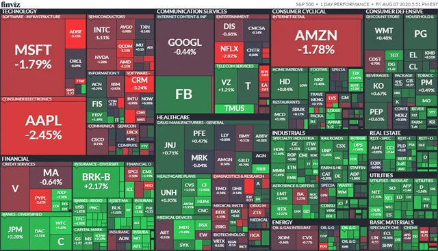 Americké akcie zakončily páteční seanci smíšeně, index Nasdaq Composite oslabil. Růst zaměstnanosti v USA v červenci prudce zpomalil. Indexy Dow a S&P 500 ke konci obchodování smazaly ztráty a mírně posílily poté, co ministr financí Steven Mnuchin uvedl, že prezidentovi Donaldu Trumpovi doporučí, aby neshodu Kongresu a Bílého domu ohledně ekonomického stimulu vyřešil prostřednictvím exekutivního příkazu.
