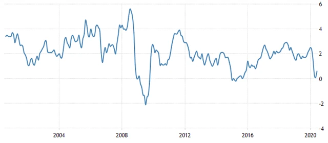 USA - vývoj meziroční míry inflace, zdroj: tradingeconomics.com