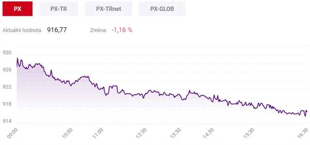 Pražská burza ve čtvrtek opět oslabila. Index PX klesl o 1,16 % na 916,77 bodu. Dolů burzu táhly hlavně akcie energetické skupiny ČEZ a části bank.