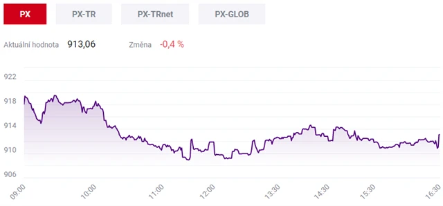 Pražská burza v pátek třetí den v řadě oslabila, index PX se snížil o 0,4 % na 913,06 bodu. Dolů burzu táhly hlavně akcie bank. Nejvýraznější propad postihl akcie Erste Group Bank, které ztratily 1,4 %. Podobný pokles má za sebou i pojišťovna VIG a Avast. Dařilo se naopak elektrárenské společnosti ČEZ, operátorovi O2 a textilce PFNonwovens.