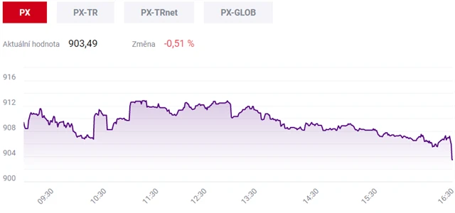 Pražská burza se vrátila k poklesu, index PX v pondělí ubral půl procenta