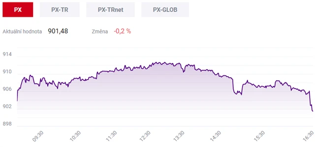 Pražská burza i ve třetím obchodním dnu tohoto týdne klesla, index PX se ve středu snížil o 0,2 % na 901,48 bodu. Oslabily akcie bank, rostly naopak cenné papíry vývojáře antivirového softwaru Avast.