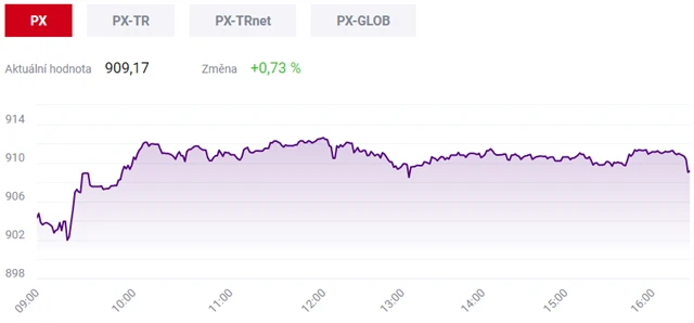 Pražská burza po víkendu navázala na růst z konce minulého týdne