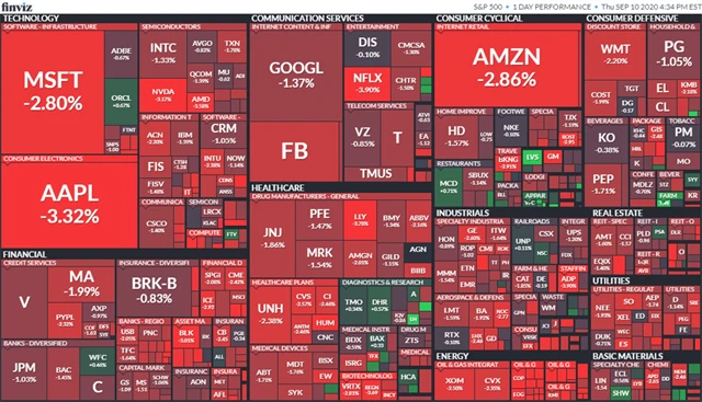 Index Dow klesl o 1,45 % na 27 534,58 bodu, širší S&P 500 oslabil o 1,76 % na 3 339,19 bodu a index technologického trhu Nasdaq Composite se snížil o 1,99 % na 10 919,59 bodu. Index volatility VIX se zvýšil o 3,12 % na 29,71 bodu a výnos 10letých vládních dluhopisů USA klesl o asi dva bazické body na 0,682 %.
