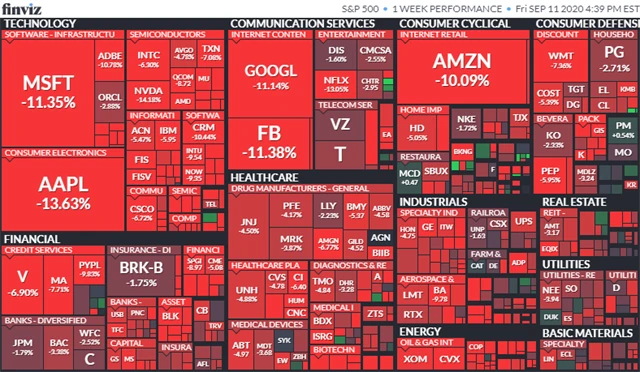 Za celý týden, který byl zkrácený o pondělní státní svátek, index Dow klesl o 1,66 %, S&P 500 se snížil o 2,51 % a Nasdaq oslabil o 4,06 %.