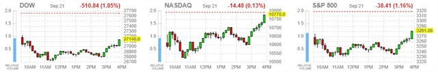 Zářijové výprodeje pokračují, v pondělí americké akciové indexy opět klesly. V závěru seance ale technologické tituly pomohly napravit část ztrát