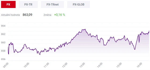 Pražská burza opět změnila směr a vzrostla o 0,16 procenta
