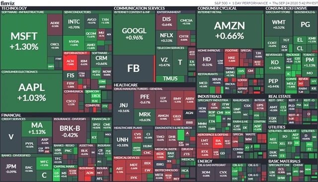 K růstu přispěly například akcie technologického gigantu Apple (+1,03 %), internetového obchodu Amazon (+0,66 %), výrobce grafických čipů NVIDIA (+1,85 %) či sociální sítě Facebook (+0,2 %). Posilovaly rovněž akcie stavitelů domů. Ty těžily ze zprávy ministerstva obchodu, že prodej nových rodinných domů v USA se v srpnu vyšplhal na nejvyšší úroveň za téměř 14 let.