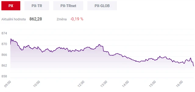 Pražská burza mírně oslabila, index PX klesl o 0,19 procenta
