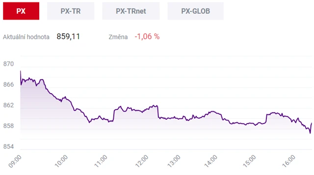 Pražská burza ve čvtrtek ztrácela. Index PX klesl o 1,06 procenta na 859,11 bodu, což je jeho nejnižší závěrečný kurz od poloviny května. Dolů ho táhly především akcie technologické společnosti Avast. Opačným směrem na index působila hlavně emise telekomunikační společnosti O2.