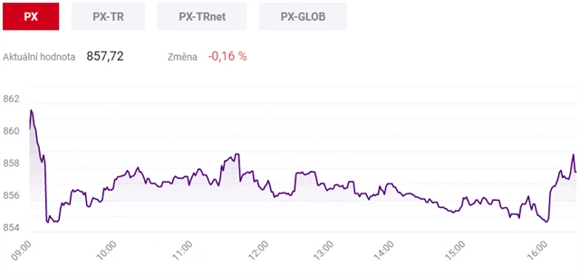 Pražská burza se dostala na nejslabší úroveň od konce dubna, kdy ještě platil nouzový stav. Index PX v pátek klesl o 0,16 procenta na 857,72 bodu, což je nejméně od 24. dubna.