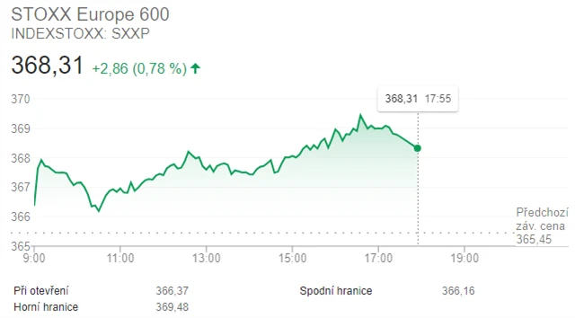 Panevropský index STOXX Europe 600 stoupl o 0,78 % na 368,31 bodu, britský FTSE 100 se zvýšil o 0,53 % na 5 978,03 bodu, francouzský CAC 40 posílil o 0,61 % na 4 911,94 bodu a německý DAX uzavřel se ziskem 0,88 % na 13 042,21 bodu.