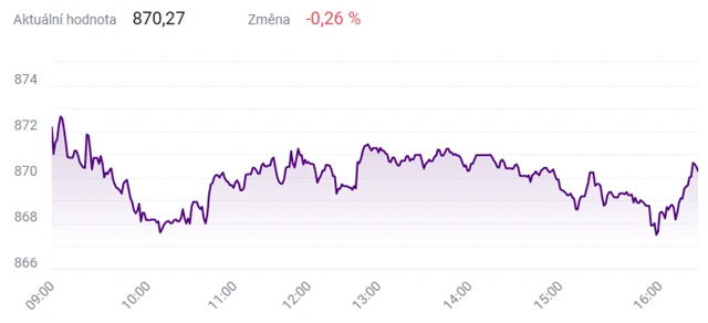 Pražská burza na začátku nového týdne pokračovala v poklesu, index PX se snížil o 0,26 % na 870,27 bodu. Nejvýrazněji zlevnily akcie Erste Group Bank, energetické společnosti ČEZ a telekomunikační firmy O2. Vzrostly naopak cenné papíry vývojáře antivirových programů Avast.