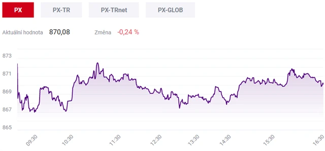 Pražská burza v úterý mírně oslabila. Index PX klesl o 0,24 % na 870,08 bodu. Nejvýrazněji zlevnily akcie softwarové firmy Avast, a to zhruba o 3,5 %.