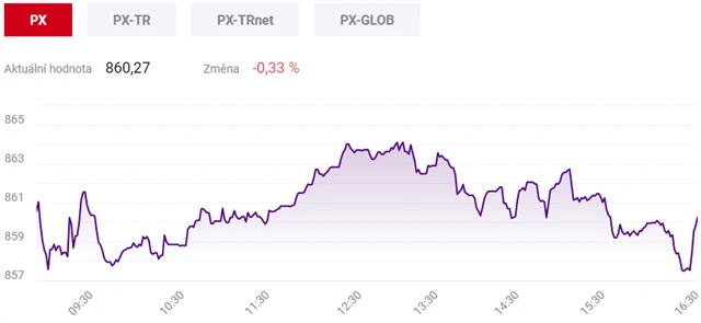 Pražská burza zahájila týden poklesem. Index PX v pondělí oslabil o 0,33 % na 860,27 bodu. Dolů ho táhly hlavně akcie telekomunikační společnosti O2 Czech Republic spolu s dvojicí rakouských finančních titulů. Výraznějšímu poklesu bránily cenné papíry energetické firmy ČEZ a banky MONETA. Na trhu START se v pondělí začalo obchodovat s akciemi společnosti Pilulka. Debut titulu byl úspěšný, cena akcií Pilulky stoupla o téměř 18 %.