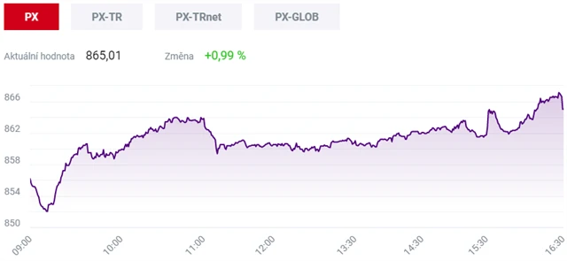 Pražská burza ve středu posílila potřetí v řadě navzdory tomu, že většina hlavních titulů skončila v červeném. Index PX posílil o 0,99 % na 865,01 bodu. Nahoru ho vytáhly hlavně akcie technologické společnosti Avast a energetické skupiny ČEZ.