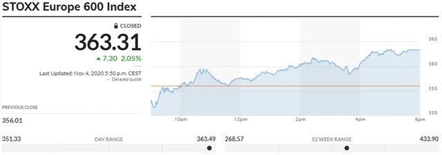 STOXX Europe 600 - 4. listopadu 2020, zdroj: Marketwatch