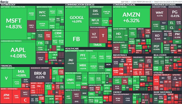 Americké akcie ve středu výrazně rostly, třebaže výsledek prezidentských voleb ve Spojených státech je zatím nejistý. V přepočtu hlasů na volitele zatím vede kandidát Demokratické strany Joe Biden. Možná patová situace v Kongresu, tedy pokud se nepodaří demokratům ovládnout Senát, vzbuzuje optimismus investorů. Znamenalo by to totiž, že by nebylo snadné prosadit jakoukoli zásadní změnu.