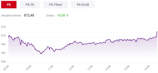 Pražská burza počtvrté v řadě posílila. Index PX ve čtvrtek stoupl o 0,86 % na 872,48 bodu. Polepšila si naprostá většina hlavních emisí burzy. Nejvýrazněji zdražily akcie energetické firmy ČEZ.