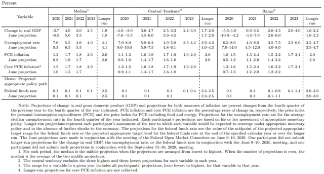 Fed v září uvedl, že pandemie bude nadále zatěžovat ekonomiku, zlepšil ovšem proti červnu výhled vývoje hospodářství. Do konce roku má podle prognózy ze září míra nezaměstnanosti klesnout na 7,6 %, v červnu Fed čekal, že bude 9,3 %. V roce 2023 by se nezaměstnanost měla snížit na 4 %.