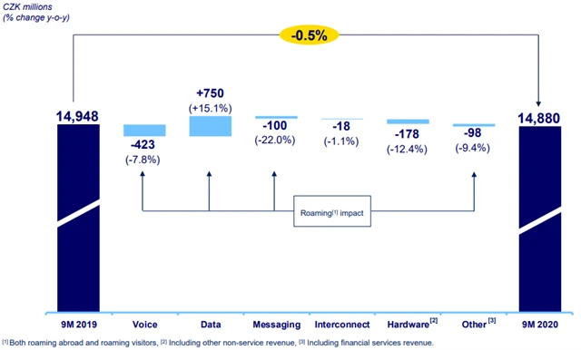 Také ve třetím čtvrtletí se ve finančních výsledcích operátora projevoval negativní dopad pandemie covidu-19. Kvůli poklesu cestování do zahraničí a z něj do Česka zůstaly jednou z nejvíce zasažených oblastí výnosy z roamingu. "Přestože jsou telekomunikace vůči dopadu pandemie relativně imunní, i u nás se negativně projevují některá protiepidemická opatření," uvedl generální ředitel O2 Jindřich Fremuth.