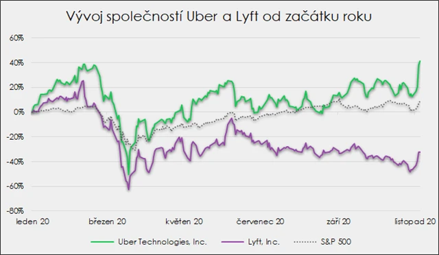 "Z byznysového pohledu byla v týdnu nejzajímavější situace v Kalifornii. Přes 58 % voličů se tam v rámci voleb vyslovilo pro návrh známý jako Proposition 22. Díky tomu mohou být řidiči společností, jako jsou Uber nebo Lyft, považováni za nezávislé dodavatele, na které se nevztahuje pracovní zákon přijatý v minulém roce. Na základě toho měli mít pracovníci v takzvané gig ekonomice nárok na dovolenou, nemocenskou nebo minimální mzdu. Akcie společnosti Lyft rostou v reakci na prosazení návrhu o 8 %, akcie Uberu dokonce o 20 %. Ostatně obě firmy nenechaly nic náhodě a do předvolební kampaně za prosazení návrhu investovaly (spolu s dalšími společnostmi) přes 200 milionů dolarů. Udělaly z toho tak nejdražší referendum v historii státu," upozornil také Martin Luňáček.