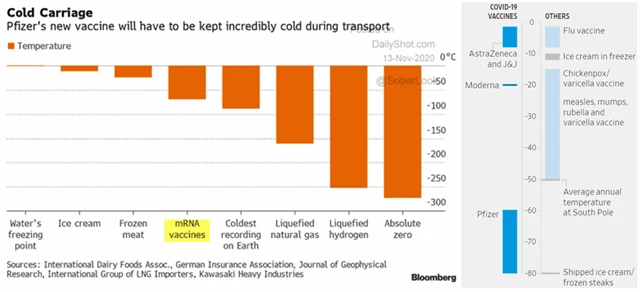 "Optimismus investorů ohledně vakcíny je jistě namístě, samotná vakcinace je ovšem běh na dlouho trať," upozorňuje Martin Luňáček z investiční robo-advisory platformy Portu. "Nepomáhá tomu ani fakt, že zmiňovanou vakcínu od Pfizeru je nutné skladovat v -70 až -80 °C. To může být slušný logistický oříšek a výrazná nevýhoda proti konkurenci. Například vakcíny od Johnson & Johnson a AstraZeneca je možné skladovat při standardních teplotách, které zvládne i vaše domácí lednička."