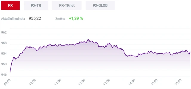 Pražská burza v pondělí stoupla na nejsilnější úroveň za skoro půl roku