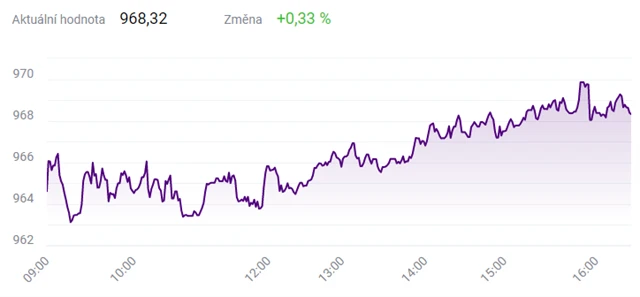 Pražská burza se po čtvrtečním oslabení v pátek vrátila na nejsilnější úroveň od březnového začátku epidemie nemoci covid-19 v Česku. Index PX stoupl na závěr týdne o 0,33 % na 968,32 bodu. K růstu mu pomohly hlavně posilující akcie Komerční banky a bankovní skupiny Erste.