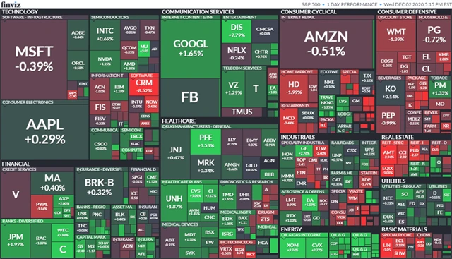 V posledních dnech pomohly akciím také signály pokroku ve vývoji a distribuci vakcíny proti covidu-19. Nejnověji vakcína firem Pfizer (+3,53 %) a BioNTech (+6,21 %) získala povolení pro použití v Británii. Ta se tak stala první západní zemí, která schválila použití vakcíny proti covidu-19.