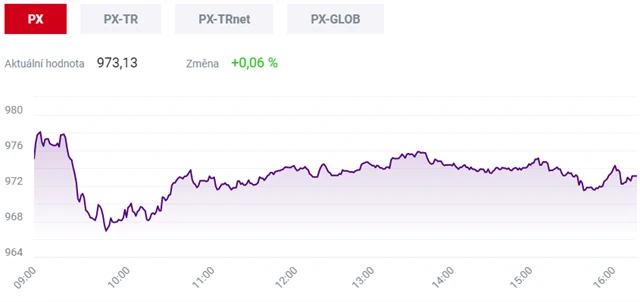 Pražská burza v pondělí mírně posílila, index PX stoupl o 0,06 procenta na 973,13 bodu. Vzhůru mu pomohly především akcie energetické společnosti ČEZ.