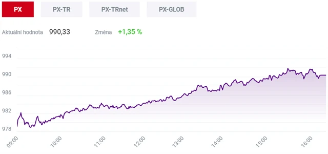 Index pražské burzy se na nejvyšší úroveň od 5. března, tedy doby těsně po začátku epidemie koronaviru, dostal koncem listopadu, od té doby burza maximum už několikrát vylepšila. Dnes zakončila těsně pod hodnotou z 5. března, tehdy PX uzavřel na 990,66 bodu.