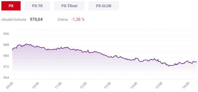 Se ztrátou uzavřelo čtvrteční obchodování 9 z 11 titulů ovlivňujících hodnotu indexu PX. Výprodejům odolaly pouze cenné papíry energetické společnosti ČEZ a producenta tabákových výrobků Philip Morris ČR.