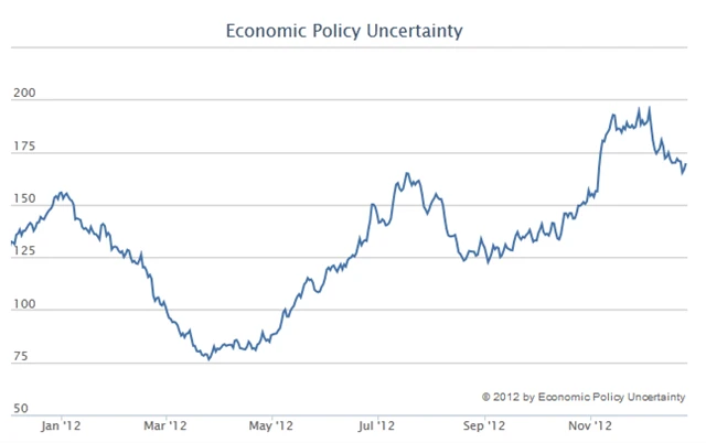 Kromě samotného zadlužení trápí zejména periferní země eurozóny i vysoká nezaměstnanost, která se v Řecku a Španělsku pohybuje kolem 25 %, v Itálii i Francii překročila 10% hranici. S koncem roku 2012 se stále silněji o slovo hlásil americký fiskální útes, opomenout nelze ani geopolitické hrozby v podobě izraelsko-íránského napětí, vojensky sílící Číny či jaderného programu Severní Koreje. Logicky se tak nabízí otázka, co na všechna tato rizika říkají investoři.