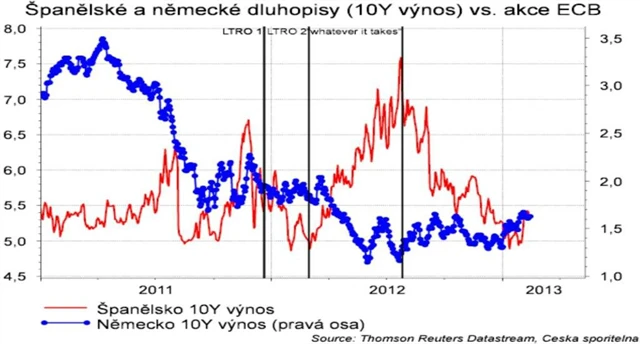 2. Akce ECB (OMT) snižují roli bundu jako bezpečného přístavu. Zatímco například španělské dluhopisy prošly korekcí, německé jen částečně.