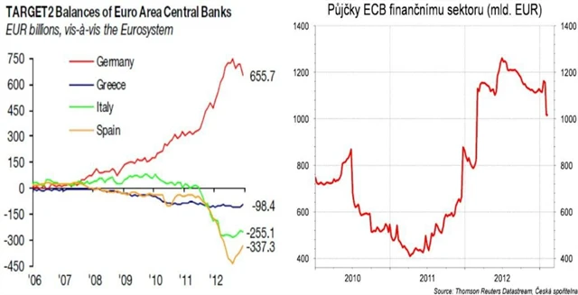 3. Likviditní problémy bank na jihu Evropy se zmenšily a dochází k přesunu likvidity z Německa, banky splácejí ECB půjčky získané v rámci LTRO.