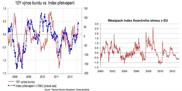 6. Finanční trh je pozitivně překvapován ohledně makra EMU a ocenění instrumentů na finančním trhu indikuje mnohem nižší napětí (finanční stres) v EU.